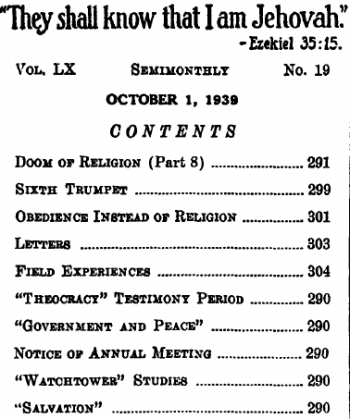 Week of November 5: “Doom of Religion” (Part 8), 1-16 inclusive, The Watchtower October 1, 1939.