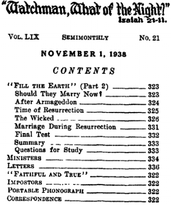 It is not always easy to get adjusted quickly in word and action to new conceptions and conditions; but every loyal “sheep” will follow the enlightenment of The Watchtower, and the instruction of the organization method which follows as a consequence, and this will be done in a spirit of obedience to the Lord God, the Giver of the light. Also it is certain that, now the light is come, any spirit of dictatorship or disobedience – much the same things – will cause the holder of that spirit to be taken out of Jehovah’s organization–it would cleanse itself of the evil thing. Jehovah will now keep his organization clean, freed from democrats or dictators.