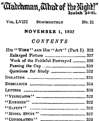 Prior to the Lord’s coining to his temple for judgment there were a number who had received the truth and responded to the call for the kingdom but who because of selfishness had rebelled against the light and began to fall away. The “rebellious” ones mentioned in the prophecy therefore would include all such who began to fall away about 1917 and who were gathered out and formed the “evil servant” class. Such claimed to be Jews (that is to say, devoted to God’s praise and service of his King), and, says the Lord, ‘They are not, but are of the synagogue of Satan.' (Rev. 2: 9; 3:9) ‘They are those that rebelled against the light? (Job 24:13) It was the duty of The Watchtower to speak with plainness to such, and by the Lord’s grace this was done. Those who failed to heed the Lord’s warning found themselves in the “evil servant” class and the “man of sin”.