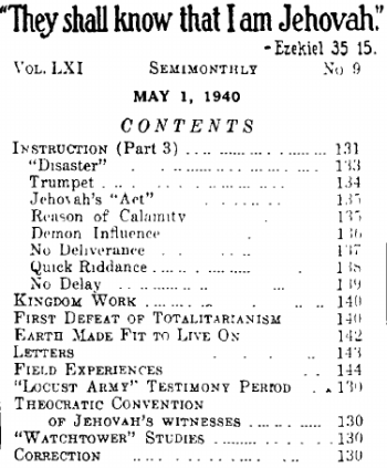 In the April 1, 1940, issue of The Watchtower, page 103, in the concluding sentence of paragraph 15, it should read “Preservation” instead of “Preparation”.