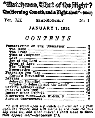 21 The words of the psalmist, “Jehovah preserveth all them who love him,’’ constitute the text for the year 1931 and will be more appreciated because the church now has a clearer vision of its meaning than heretofore. It is true that the text announces a universal law of Jehovah, but it is also certain that its particular application could not be until the coming of the Lord to his temple. It is then that judgment began, and that judgment must begin with those who have responded to the call to the house of God. (Ps. 11:4; 1 Pet. 4:17; Mal. 3:1-4) It is then that the “Wicked’’ is revealed and that the ‘‘faithful servant’’ is also made manifest. Now Jehovah, true to his promise, discloses to the faithful the former things that have come to pass in fulfilment of prophecy, and now he discloses new things unto them, and before these spring forth he makes known the meaning thereof to the faithful. (Isa. 42:9) To those whose motives are right these truths call forth more intense devotion to Jehovah and induce them to sing unto the Lord the new song of praise.