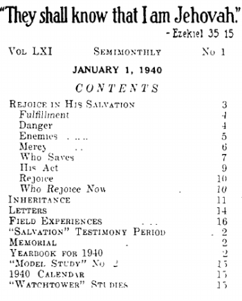 Week of February 4: “Rejoice in His Salvation,” 1-24 inclusive, The Watchtower January 1, 1940