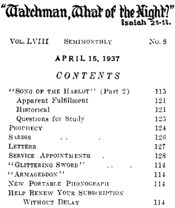 This new 64-page booklet is a thriller and of absorbing interest. It contains the president’s public address on that subject, which held spellbound vast European and American audiences, and also includes a clear Scriptural discussion of who will survive that dread conflict. The release of this booklet for regular house-to-house witnessing is announced elsewhere. Meantime you may procure the booklet for your own information and preparation, at 5с a copy.