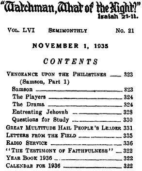 23 The Philistines were a proud, haughty, insolent people and were desperately wicked. It is Jehovah who provides the means to break through and smite the proud. (Job 26:12) Here Jehovah was making provision to bring forth Samson to smite the enemy and to begin the deliverance of Israel. Manoah’s woman is not named, but she is called the “wife” of Manoah, and it is stated that she was barren. Thus she corresponds with the description of God’s woman, that is, his organization described by Isaiah, and who in due time becomes the mother of all of God’s children. (Isa. 54:1-13) As Jehovah had a fixed time to bring forth the child Samson, who was to begin the deliverance of his people, likewise he had a fixed time for his message to go forth beginning to prepare the way before him in order that he might come to his temple and then deliver his people. (Mal. 3:1-3) God’s woman or organization could not bring forth until Jehovah’s due time. From and after Pentecost the true followers of Christ Jesus looked for his coming again, and that was the great thing that attracted their attention. It was about 1874 that the true followers of Christ Jesus began to have their attention fixed upon the second coming of Christ Jesus, and thereafter much was published concerning the same. (See The Watchtower, February 1881, pages 3, 4.)